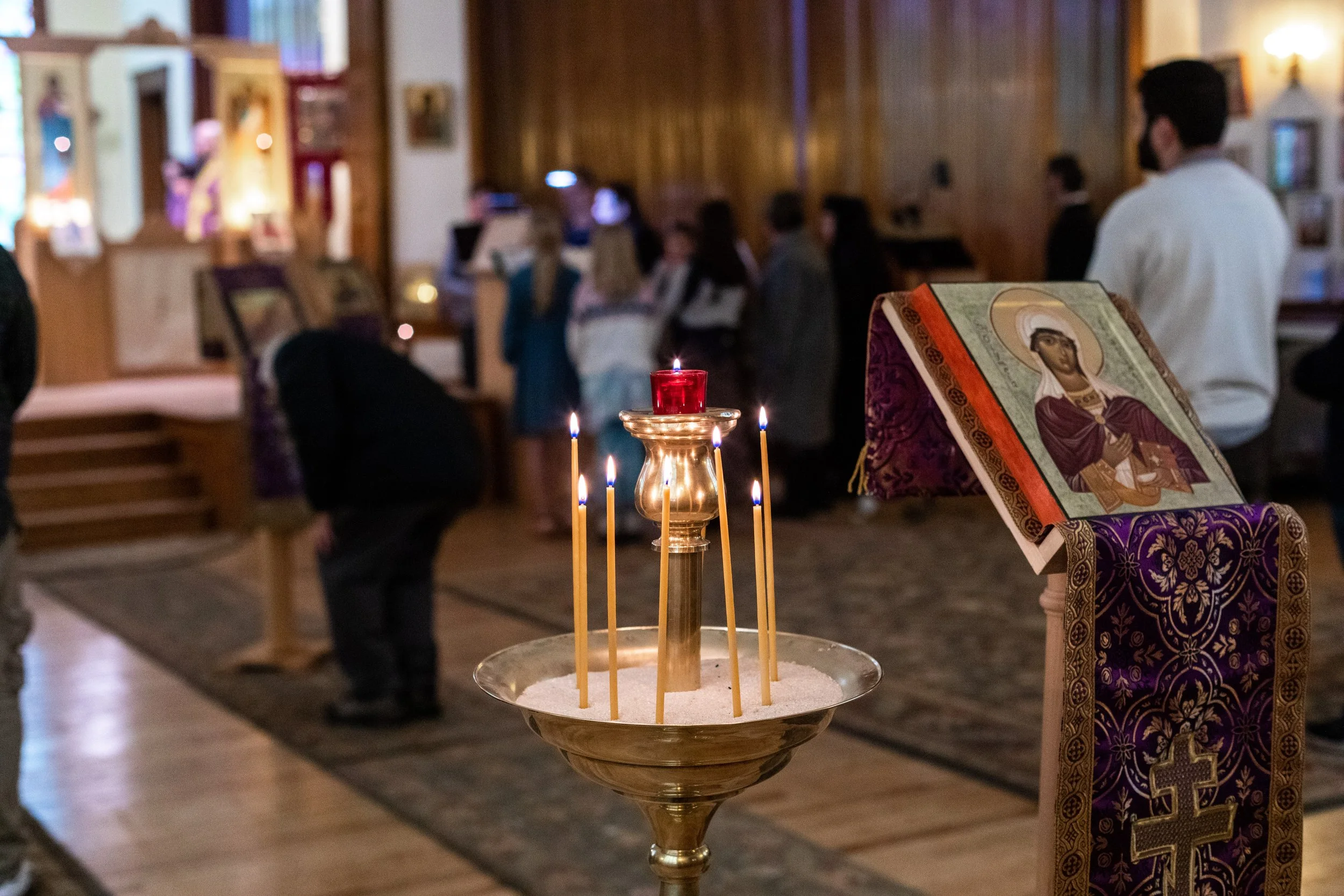 During the early part of the service the church may seem to be in a hubbub, with people walking up to the front of the church, praying in front of the iconostasis (the standing icons in front of the altar), kissing things and lighting candles, even though the service is already going on. In fact, when you came in the service was already going on, although the sign outside clearly said “Divine Liturgy, 9:30.” You felt embarrassed to apparently be late, but these people are even later, and they’re walking all around inside the church. What’s going on here?
