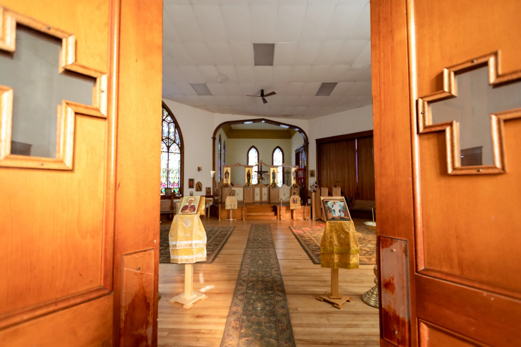 SAFETY - please use caution or avoid using the side entrance that leads into the side narthex. It is icy and near many large icicles.